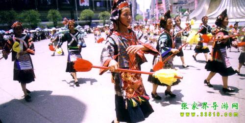 亞宜帶領(lǐng)眾人迎敵,戰(zhàn)斗了三天三夜,終因寡不敵眾向西撤退,得到貴州苗族支持,同官家周旋了一年。第二年四月八亞宜和貴州英雄亞努等人戰(zhàn)死在貴陽(yáng)城。從那時(shí)起,“四月八”就成了青年男女聯(lián)歡節(jié)和祭祀英雄的紀(jì)念日。盡管歷代統(tǒng)治階級(jí)都以各種借口加以禁止,而具有反抗精神的苗族人民,只是改變了跳花的形式,仍然保留著聚會(huì)對(duì)歌內(nèi)容。一年一次,世代相傳,知道民國(guó)時(shí)期各地才先后中斷。后于一九八一年國(guó)家民委批示統(tǒng)一在京的苗族過(guò)“四月八”而才得到恢復(fù)。一九八六年在鳳凰上下落朝井鄉(xiāng)龍?zhí)梁哟澹?ldquo;四月八”的發(fā)源地舉行隆重聚會(huì)。這一天啟明星才掛在樹(shù)尖尖上的時(shí)候,湘黔邊境各地的男女青年,身著節(jié)日的盛裝,踏著路邊毛草上的露珠,唱著歌,吹著木葉,嘻嘻哈哈,迎著燦爛的朝露,從各條彎彎的山道上,向“跳花溝”涌來(lái)。十嶺八坡,山溝里外,龍河兩岸都站滿了人,熙熙攘攘,熱鬧非凡。會(huì)場(chǎng)的正中掛有寬六尺長(zhǎng)七尺的淺紅大旗,繡有“四月八”三個(gè)大字,兩邊龍鳳圖案,莊嚴(yán)古樸,表示歷史悠久和不忘祖先功德。