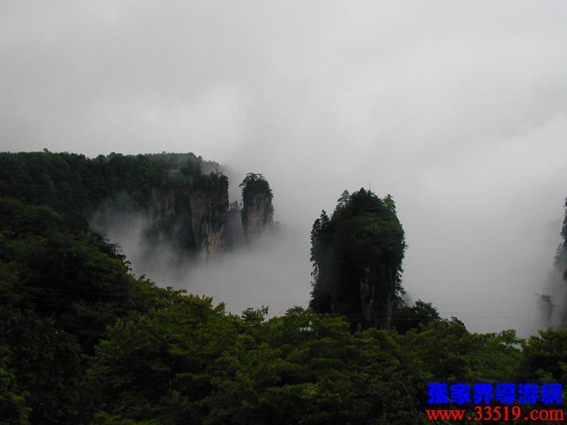 這里,我還給大家講個(gè)奇異現(xiàn)象。1991年4月的一天下午,雨過天晴,整個(gè)天子山漫開一片朦朦朧朧的薄霧,從西海到神堂灣一帶,一座座巖峰在霧中時(shí)隱時(shí)現(xiàn)。一群上海游客來到點(diǎn)將臺(tái),忽然,一幅奇異的場景把大家驚呆了:神堂灣中央,七位少女從云霧中飄落到一座巖峰峰頂?shù)钠脚_(tái)上,飲茶、撫琴,翩翩起舞達(dá)40分鐘之久。游客們起初以為是一種幻覺,揉揉眼睛再看,仍然是三綠四紅,長發(fā)披肩,體態(tài)婀娜,舞步輕盈。直到“仙女們”隨一片云霧漸漸隱去的前一秒鐘,大家仍然不敢弄出半點(diǎn)聲響,有相機(jī)的就拼命按快門。遺憾的是距離太遠(yuǎn)了,當(dāng)晚將膠卷取去沖洗,什么也沒留下。消息傳開后,有人相信,有人不相信。其實(shí),神話也好,事實(shí)也好。這種奇異現(xiàn)象完全可用科學(xué)去解釋。“海市蜃樓”這是人所共知的;而大沙漠中不也經(jīng)常出現(xiàn)綠洲、村莊、城市么?