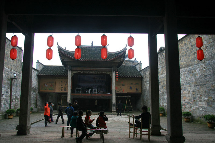 臨河戲臺幾乎天天都唱戲給烏舡子看。唱他們最愛看的湘劇,并且都是折子戲而非整場戲,因為整場戲常常要唱十天半月,烏舡子沒看得完就要返航。折子戲短,最切合烏舡子的??繒r日。唱的多半是“三國戲”:《空城計》、《定軍山》、《走麥城》、《三氣周瑜》,還有《黃鶴樓》、《摘梅桃》……數(shù)也數(shù)不完。戲班子都是由八元堂寧鄉(xiāng)會館從各地邀請來的,免費公演。招呼戲班子的費用由會館埋單,免不了要請到怡華樓、月華樓、奇珍閣等有名的飯館去吃“八大碗”,唱完戲還有夜宵招待,吃靖港的特色小吃。戲班子當(dāng)然就更賣力。烏舡子上的船老大不但愛看戲,還蠻會享受,他們把船搖得正正地對準(zhǔn)臨河戲臺,和小老婆肩并肩雙雙坐船頭,一邊津津有味地看戲一邊津津有味地喝著靖港谷酒,吃著從靖港街上買來的香干子和鹵菜,搖頭晃腦,張嘴咋舌,樂不思蜀。也有許多古鎮(zhèn)居民來看免費戲,他們常常爬到烏舡子上,與船老板和和老板娘一起看戲,船老板熱情大方,會讓出座位來,邊看戲邊和本地居民扯談,對古鎮(zhèn)也就更加熟悉了解。