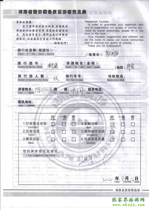 - 游客夏先生為表揚(yáng)導(dǎo)游李姣姣寫來表揚(yáng)信致我張家界... [14811]