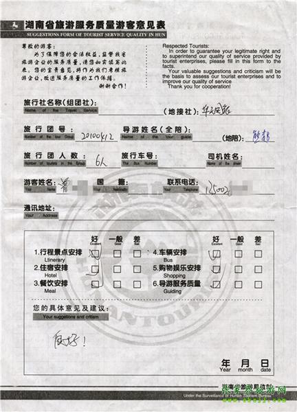 - 2011年10月26日張小姐一行18人旅游質(zhì)量反饋 [10482]