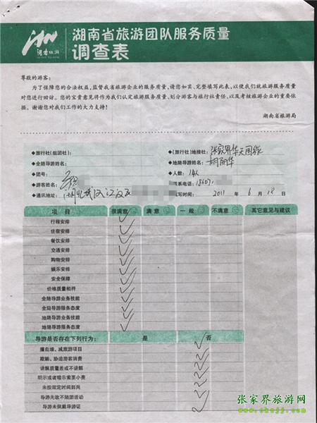 2011年6月18日祝先生一行14人旅游質(zhì)量反饋