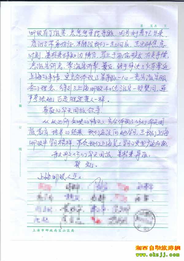 2010年5月31上海郵政局對我社導(dǎo)游的表楊信