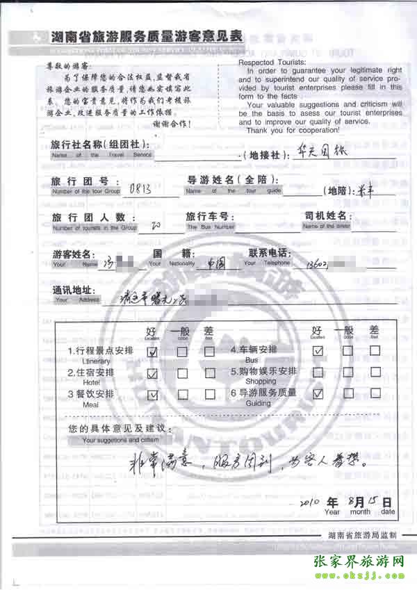 2010年8月15日清遠(yuǎn)馮先生一行20位旅游質(zhì)量反饋:非常滿(mǎn)意,服務(wù)周到,為人著想
