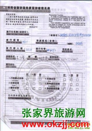 2010年4月5日香港呂先生張家界鳳凰旅游質(zhì)量反饋
