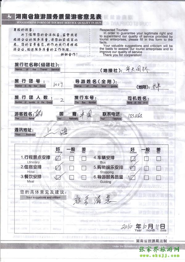 - 游客夏先生為表揚導游李姣姣寫來表揚信致我張家界... [14811]