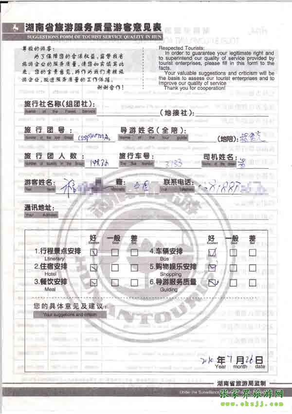 2010年7月26日程先生旅游質量反饋