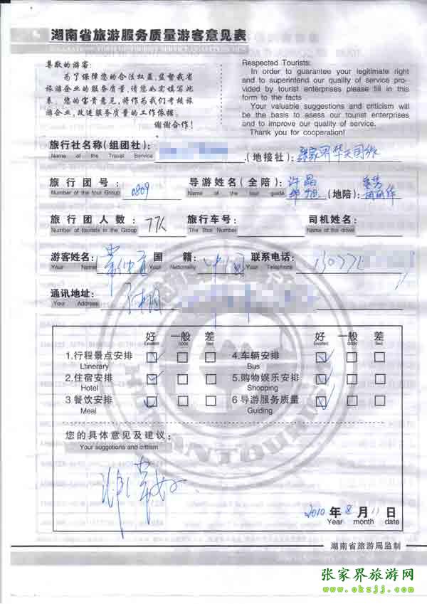 2010年8月11日岳陽(yáng)常先生一行77位旅游質(zhì)量反饋