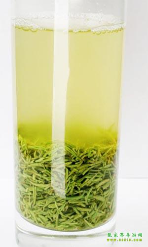 武陵源風(fēng)景區(qū)盛產(chǎn)香茶,著名的有“青巖茗翠”、“龍蝦花茶”、“黃石寨云霧茶”、“天崇毛尖”與“索溪毛尖”等。通過1982年評比,“青巖茗翠”獲部級金杯獎,同年又獲全國首屆食品博覽會銀獎。“龍蝦花茶”也已列入全國名茶。人們經(jīng)過品嘗、評比,并經(jīng)茶葉專家鑒定,一致認為“青巖茗翠”、“龍蝦花茶”等具有外形美觀,內(nèi)質(zhì)優(yōu)良等特點。這種茶葉,從外形來看,條索緊結(jié),圓渾彎曲,苗鋒顯露,銀毫滿披,色澤翠綠,從內(nèi)質(zhì)來看,清香馥郁,味醇回甘,湯色綠明,葉底均勻,飲后爽神,具有熟板栗蘭花之奇香,飲后回味無窮。據(jù)考證,“青巖茗翠”屬高山云霧茶一類。自古道:“高山出好水,云霧育佳茶”。黃石寨枇杷界海拔1000多米,氣候溫和,云霧繚繞,溫度適宜,因而,茶葉嫩度高,品質(zhì)好。這種獨特的環(huán)境為茶葉中的氨基酸,咖啡堿等有效成分的形成和增長,提供了優(yōu)越的生長條件,而對質(zhì)地粗老的纖維素的形成,則又起到了抑制作用。還有,這些山峰上日照短,直射光少,漫射光多,晝夜溫差大,土質(zhì)的有機質(zhì)豐富,因而結(jié)構(gòu)疏松,排水又好。一切這些因素,都為茶葉的平穩(wěn)生長創(chuàng)造了良好的條件。所以“青巖茗翠”茶,就博得了各地名家的一致好評。湖南省茶葉學(xué)會秘書長、湖南農(nóng)學(xué)院副教授朱先明品了這種茶以后,賦詩贊美: