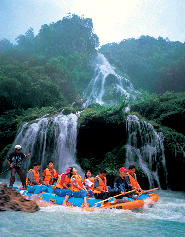 到了大門口,彭導(dǎo)幫我們?nèi)ベI了門票,248元/人,共花去496元。彭導(dǎo)先前給我們預(yù)算是,按最經(jīng)濟(jì)的帳目來算的,470元/人(包括進(jìn)山大門票,但不包括索道、天梯、酒水等),他說出門在外,能節(jié)約點(diǎn)就節(jié)約點(diǎn)。當(dāng)然他也知道我們可能會超出這個(gè)標(biāo)準(zhǔn),如果有必要,到時(shí)可以再自己花費(fèi)。買了門票后,我給了他500塊,算是這幾天的費(fèi)用,他說,不是說好是每人470的嗎,你應(yīng)該是給我444塊。我說,上次謝謝您的關(guān)心,這次不能讓你太吃虧了。彭導(dǎo)說,那今天晚上我叫店家給你們加個(gè)菜,呵呵呵。 下午,我們玩了森林公園中的黃石寨和金鞭溪??戳颂鞎鴮毾?、點(diǎn)將臺、南天柱、摘星臺、六奇閣,五指峰、金鞭溪、金鞭巖、文星巖、紫草潭、千里相會等,彭導(dǎo)果然是彭導(dǎo),有著二十年的導(dǎo)游經(jīng)驗(yàn)的他就是不同凡響啊,個(gè)個(gè)景點(diǎn)都是如數(shù)家珍,說得是頭頭是道。(據(jù)網(wǎng)上說,有些導(dǎo)游是只帶路不講解,讓人只是看看表面,而無法去領(lǐng)略張家界那些精美絕倫的凄美傳說。我個(gè)人認(rèn)為張家界的傳說也是應(yīng)該值得每一個(gè)游人去了解,去領(lǐng)略的,如果你來張家界沒有聽到這些傳說的話,那一是你的導(dǎo)游的水平問題,二是你的一個(gè)很大的遺憾,你來張家界的經(jīng)歷是不完美的),什么龍蝦花的來歷,金鞭巖的前身,秦始皇和孟姜女與張家界的關(guān)系。晚上乘百龍電梯上袁家界(張家界的核心)一家旅館住宿。晚餐時(shí),一葷一素一湯。我們吃著吃著,老板笑咪咪的搬上一鍋火鍋,當(dāng)?shù)氐耐岭u火鍋。我們很詫異,我說,我們沒有點(diǎn)這個(gè)菜啊!老板,你是不是弄錯(cuò)了?老板說,這是你們彭導(dǎo)叫我特地做的。我突然明白了,一定是彭導(dǎo)是為我多給的那50多塊錢了。由于長途奔波,加上下午又走了很多路,晚上洗了一個(gè)澡就睡下了。山里的氣溫很低,在這全國都如火爐時(shí),張家界的晚上卻要蓋很厚的被子,真是一塊寶地啊。 第二天早上,我們參觀了袁家界的風(fēng)景,其中最有名的當(dāng)然數(shù)天下第一橋,這是由兩座巖石山的山頂自然生長在一起,非人所能為也。天下第一橋的稱號當(dāng)之無愧啊。當(dāng)然在袁家界,后花園也是不能不看的。張家界號稱“峰三千,水八百”,在這里你就能明顯的感覺到這句話的前半句是那么的實(shí)在??赐陱埣医绲暮诵脑医?,我們乘車到了天子山(張家界景區(qū)內(nèi)的最高的地方)。玩了賀龍公園、御筆峰、仙女散花、西海、石船出海、仙人橋、天子廟、十里畫廊、一步難行。不巧的是,那天山上下了一點(diǎn)陣雨,雨后一條彩虹掛在天上,更重要的是山上起了一點(diǎn)霧,使整座山都籠罩在霧中,若隱若現(xiàn),看上去就象是在云海中,好象老天特地配合我們似的,難得一見的西海等正好被我們趕上了。彭導(dǎo)告訴我們,這樣的機(jī)會是很難得的,可能是張家界為了感謝我的再次到來,給了我一個(gè)特別的禮物吧。我大笑。晚上趕到昨天住的地方去住宿。不提。 第三天我們玩了烏龍寨、三道鬼門關(guān)、天波府、一步登天、空中走廊等。主要是在楊家界的景區(qū)范圍內(nèi)。本來是第三天下午要去鳳凰的,但是考慮到我和女友小嵐好容易來張家界一次,盡量將張家界的能玩的地方去玩一下。我也曾聽說張家界不僅峰三千,水八百,同時(shí)天然溶洞也是非常不錯(cuò)的,據(jù)說其中一個(gè)溶洞為一根鐘乳石投保了1個(gè)還是2個(gè)億,(不怎么記得了,呵呵。)而且在張家界的宣傳資料上還看到了有漂流,打水仗等非常刺激的項(xiàng)目。我于是問一下彭導(dǎo),能否幫我們聯(lián)系一下,彭導(dǎo)很爽快的答應(yīng)了,他幫我們聯(lián)系了九天洞和茅巖河的公司。在彭導(dǎo)的上下打通下,本來是315元/人的行價(jià),硬是給用278元/人的價(jià)格給拿下了。當(dāng)搞定這些時(shí),已經(jīng)外面是天黑一片了(彭導(dǎo)家就在楊家界)彭導(dǎo)說他想回家看看,明天我們會和一群人去看洞和漂流,他就不陪我們?nèi)チ?,明天下午他會在張家界市區(qū)去接我們,到時(shí)會有車送我們?nèi)ナ袃?nèi)。然后他會送我們上去鳳凰有車,并幫我們?nèi)ヂ?lián)系鳳凰的朋友來招待我們。 第四天,清晨我們便踏上了汽車去看洞漂流。號稱亞洲第一大洞的九天洞果然是名不虛傳,我們把它現(xiàn)在開發(fā)的部分粗略的走了一下,就花了我們近月4個(gè)小時(shí),洞中鐘乳石遍地,在五彩斑闌的燈光下,顯得晶瑩剔透,閃閃發(fā)光,讓人感覺到是到了水晶宮一般,地下還有陰河,遠(yuǎn)處通知海(據(jù)說)。對了,洞中溫度很低,常年在10多度。讓人在其中感覺到一陣陣寒意。故想進(jìn)去的朋友記得多穿點(diǎn)衣服,以免著涼,切記。我們當(dāng)時(shí)就是吃了很大的虧,從洞中出來時(shí),小嵐就在點(diǎn)喀漱。下午來到茅巖河漂流。上船前看到有人賣水瓢,心中不免奇怪。雖說,張家界金鞭溪的水可以喝,但也不是每一條河的水都能喝?。坑谑巧锨叭?,一打聽才知道,這瓢不是用來舀水喝的,而是用來打水仗的。本來因?yàn)樾褂悬c(diǎn)小感冒,我們打算保持中立,但一看到各位船友們個(gè)個(gè)磨拳擦掌,人手一把瓢或者水槍(這是當(dāng)?shù)厝擞弥褡幼龅囊环N
