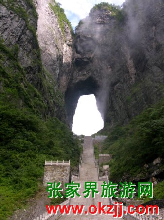 之上,門高131.5米,寬37米。據(jù)地質(zhì)專家考證,門中央系東西巖層向 斜的交匯處,因擠壓而導(dǎo)致巖