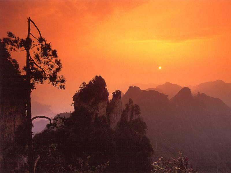 第二天   游覽世界峰林奇觀森林公園—天子山景區(qū):西海、天臺(tái)、仙女獻(xiàn)花、御筆峰、賀龍公園、臥龍嶺、十里畫(huà)廊,中途參觀百丈峽,住武陵源索溪峪